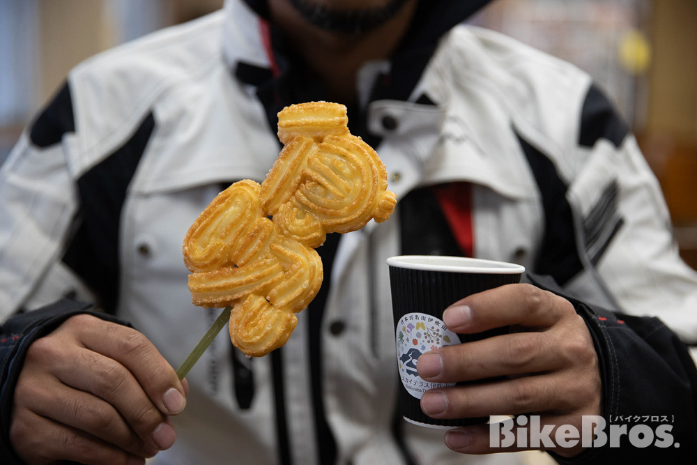 このスカイテラス伊吹山には、伊吹山のお土産やランチが揃っています。季節毎に限定メニューがラインアップされているのですが、今回は定番の関ヶ原たまりを使用した醤油ラーメン。透明感のあるスープは口当たりが軽く、麺はするすると入ります。どこかで食べたことのあるような、安心感が胃にやさしい一杯。湯気が立つ椀を両手で支えると、外気の冷たさがすっと引きます。売店には薬草茶や入浴剤、伊吹そばに加えて、伊吹山チュロスのような軽い甘味もあります。チュロスの細長い生地は「伊吹」の文字に組まれていて、表面の砂糖がさくりと割れます。駐車場から登山道で山頂へ上ると伊吹山寺があり御朱印がもらえるのですが、このスカイテラス伊吹山でも御朱印を頂くことができたのでちょっとチートさせてもらいました。