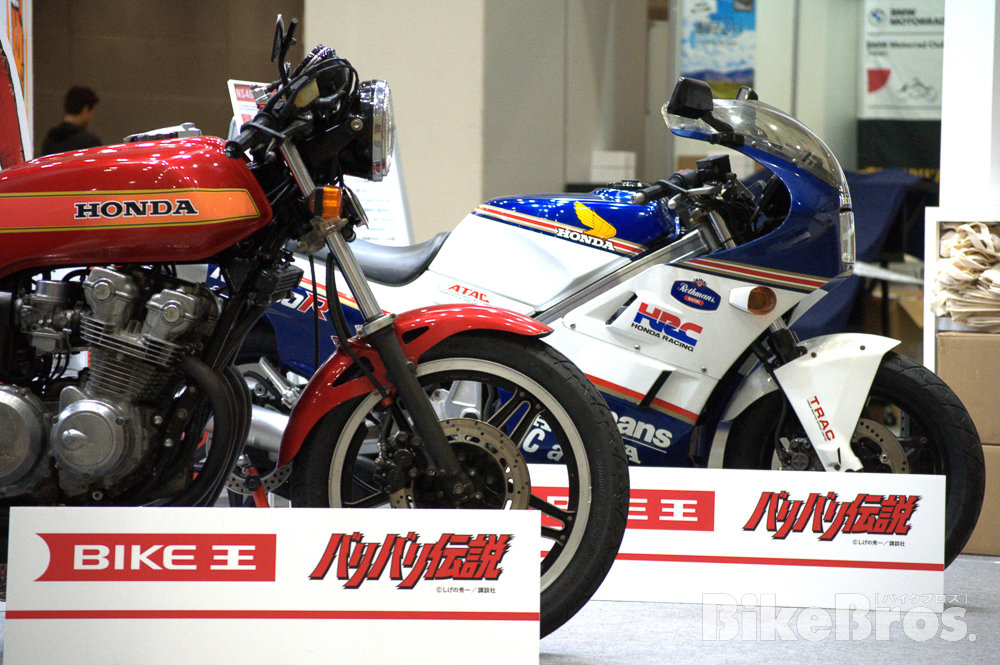 ・CB750F(バリ伝仕様)とNS400Rの実車も展示。