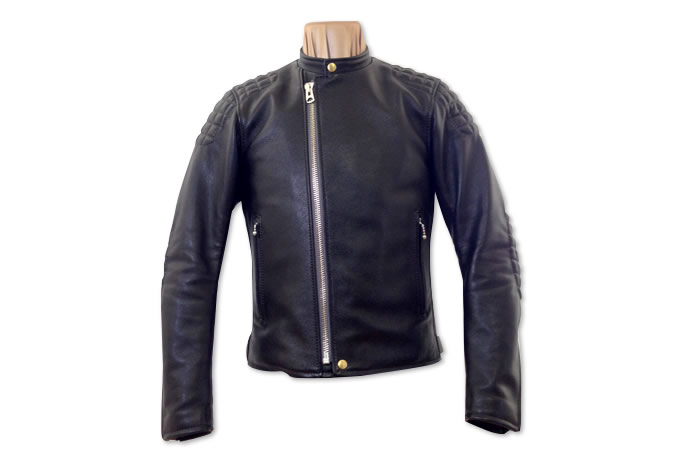 タンニンなめしの牛革を用いた、エイジングを楽しめるレザージャケット。セミダブルフロント仕立てにより、ファスナーを開ければダブルスタイルでの着用もできる。内ポケット付き。