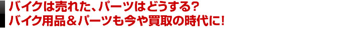 愛用のバイクを乗り換えるとき、バイク自体を買取業者に売るのは、もはや当たり前の選択肢。ところが、愛車に付いていたパーツとなると、どこに売っていいかもわからないし、そもそも買取ってくれる業者があるのかどうかすら、わからない。用品についても同様で、いつの間にか使わなくなったヘルメットやウエア類などが、押し入れやガレージの隅に眠っている、という人も少なくないはず。