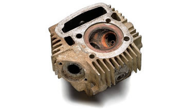 サンドブラスト経験があるサンメカなら、効率良くブラスト&クリーニングするための段取りで、作業前のパーツは徹底的に脱脂洗浄していると思う。ベットリ付着した油汚れは、事前に除去しておくのが鉄則である。汚れたままではブラスト処理と同時にメディアが汚れてしまい、キャビネット内部の脱脂洗浄も行わなくてはいけなくなってしまうからだ。今回持ち込んだホンダ横型エンジン用シリンダーヘッドは、油焼けした上にオフロードコースを走ったかのような粘土質のドロがビッシリ付着していた。それでも完全乾燥していたので、今回は意地悪テスト的にこのシリンダーヘッドを持ち込みブラスト処理してみた。