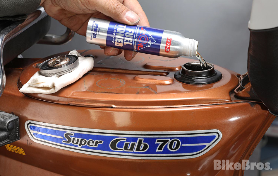 「3ステップ処方」を実践する以前と比べて、エンジンの回り方が実に滑らかかつ静かになった印象が強いスーパーカブ。2サイクルエンジンモデルでは、ギアオイルのフラッシング用として利用することができる。