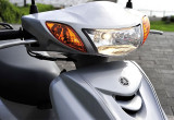 2008年にマイナーチェンジを受けたジャイロX最大の変更点は、何と言ってもエンジンです。それまで2サイクルエンジンを搭載していたのですが、近年の環境基準強化によりクリーンな4サイクルエンジンに変更されました。また、足回りも大きな変更を受けており、リアタイヤのサイズが130/60-6インチから130/70-8インチになり、トレッドも従来モデルに比べると65mm拡大。走行時の安定性が大きく向上しています。外観については前モデルから特に目だった変更点はありませんが、エンジン変更にともなってリアフードのデザインが一部刷新されています。