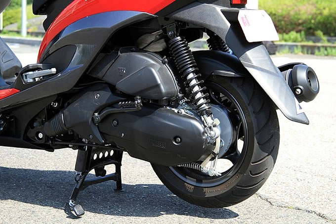 放熱性とスポーティさを高めるために、ウェーブ形状のディスクブレーキが新しく採用(SR専用)された。