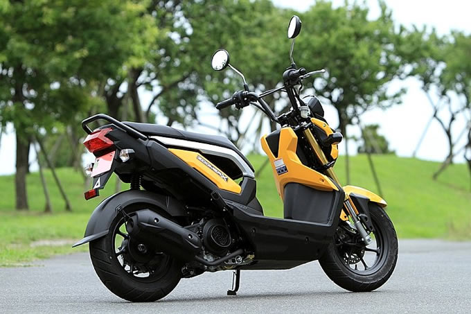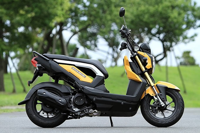 ズーマーXに搭載される空冷の110ccエンジンは、最大出力や最大トルクの数値こそ比較的小さいが、低回転から最大値を発生するよう調整されている。つまり、低中速トルクが太い特性があるのだ。具体的に言えば、信号が青に変わってからのゼロスタートが得意なスクーターといえる。同エンジンのDio110と比べると、加速性能は大幅に向上していて、エンジン味付けでこれほど変わるものかと正直驚いた。実走では、上位モデルの125ccスクーターの加速にも付いていけるダッシュ力があった。低中速でのアクセル操作にリニアに反応するダイレクトな走行感覚は実に心地よいが、その反面、高回転域は苦手だ。時速80キロまでは、よどみなく加速するが、その以上の速度に達するには、少々時間がかかった。それでも実用には充分な走行性能であることは間違いない。