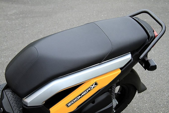 テールランプも“X”デザインをしている。シンプルなグラブバーは握りやすく、荷物を固定するネットを掛けるのにも便利だ。
