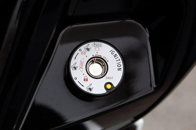 イグニッションスイッチにはワンタッチシートオープン機能を備えるほか、盗難防止用のシャッターも装備している。
