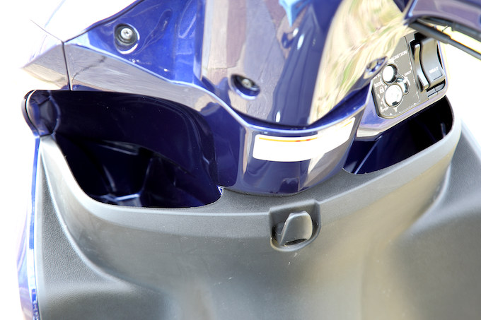 空冷スクーター用エンジンとしては初のアイドリングストップ装置は、任意にオフにできるようスイッチが設けられている。