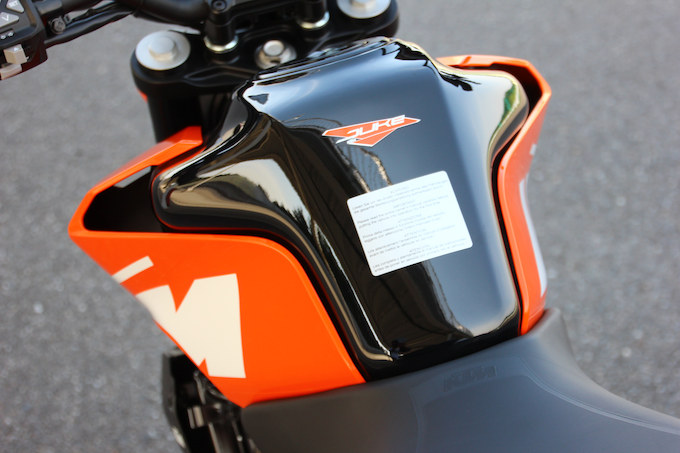 小型であってもシート高は830mmあるため、身長155cmの女性がまたがると不安アリ。しかし車重が軽いので、慣れによって解消されるかもしれない。ちなみにスモールデュークのシート高はすべて同じ設定だ。