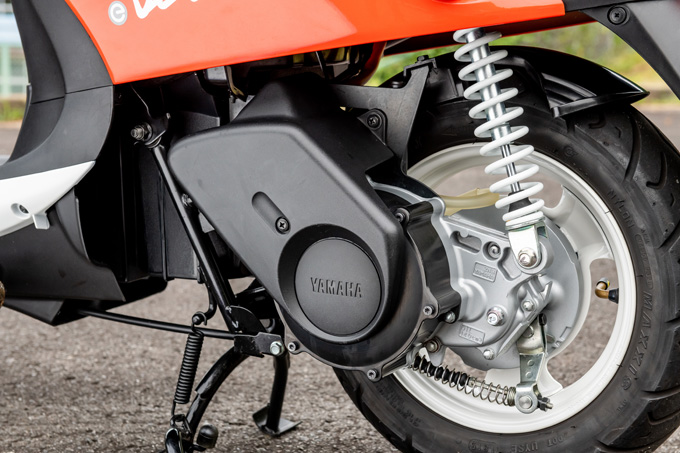 動力源となる3相ブラシレスDCモーター。多くの原付EVで見られるインホイールモーターではなく、ロスの少ないギア駆動方式を採用し、EVならではの滑らかな乗り心地と動力性能、静粛性を備えている。