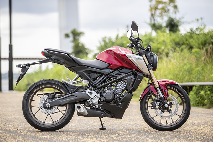 近年、原付二種は大いにそのレパートリーを増やしている。理由は普通自動車免許から限定解除するだけで乗れる免許区分と、ファミリーバイク特約でカバーできる任意保険の安さだ。国内メーカーの中でもホンダは特にこのクラスに力を入れており、スーパーカブC125やモンキー125、CT125ハンターカブなど、多くの人気車種をラインナップしている。そして、ホンダの代名詞とも言えるCBシリーズの楽しさを秘めたにが、このCB125Rである。一度このマシンに乗って、バイクを操る楽しさを知ってしまえば、もう後戻りはできない。