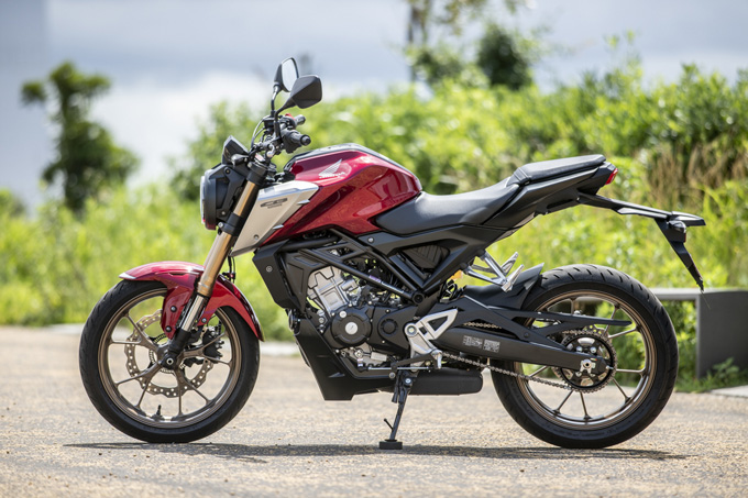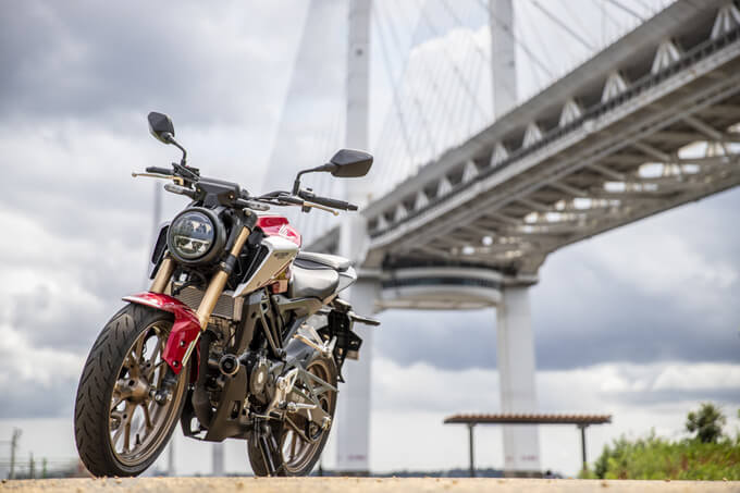 変わったのはエンジンだけではない。フロントサスペンションにはCB650R同様のSHOWA・SFF-BP(セパレート・ファンクション・フォーク・ビックピストンタイプ)が奢られている。これはフロントフォークの左右で減衰機構とプリロードを分担することで軽量化を果たしたものだ。実は、最初に跨って前後に揺らしてみた時に、ちょっと嫌な予感がした。サスペンションの動きが柔らかく、僕の苦手なピッチングの大きい(フロントブレーキをかけた時にフロントフォークが大きく沈み込む)タイプのマシンに思えたからだ。しかしそれは杞憂だった。軽量な車体のおかげか、はたまたフレームがしっかりしているからなのか、実際に乗ってコーナーでブレーキングしてみると、驚くほど車体は安定しており、嫌な沈み込みはない。スポーツ走行をするならば、もう少しフレームの剛性を上げて、サスペンションも硬めにセットすべきだろうが、街乗り重視のモデルと思えば、このセッティングで正解だろう。