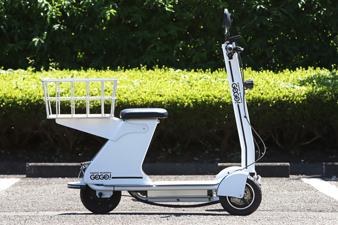 GOGO!は前2輪、後ろ1輪という独特のレイアウトで、一見するとキックスクーターの3輪版のように思える。道路運送車両法では原動機付自転車扱いだが「ミニカー登録」となるため、運転には普通自動車免許が必要で、原付免許や2輪免許では運転できない。ミニカーなのでヘルメットの装着や2段階右折の義務はなくなるが、安全上の観点から、メーカーではヘルメットの装着を推奨している。車両タイプはスタンダードモデルの「S」のほか、ボックスを搭載した「デリバリー」、今回試乗したカゴ付きの「カーゴ」などのバリエーションがある。また、車体カラーにはレモンイエローやピンク、レッドなどポップな色も用意されており、他に類を見ないユニークなデザインと相まって、若い世代や女性にも注目されそうだ。