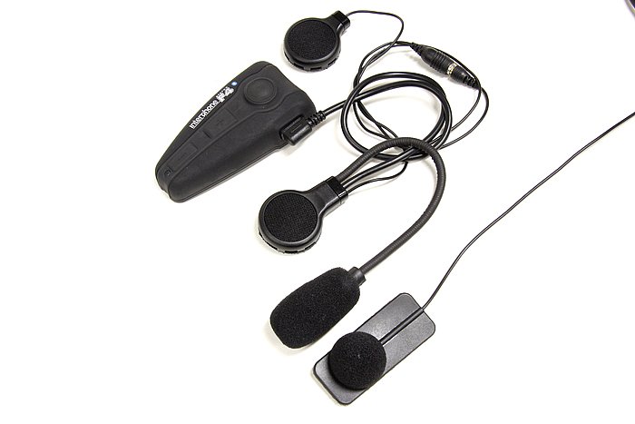これはシングルパックのキット内容で、出荷状態からマイクやスピーカーには固定用のベルクロテープが貼り付けられている。マイクはユニバーサルタイプとフルフェイスタイプの2種類を用意。