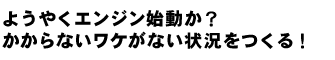 正直、もうエンジン始動のネタでひっぱるのはイヤです。でもやってみるとわかるんですけど、これが一番大変なことなのかもしれないです。エンジンさえかかっちゃえば、あとはこっちのものなんだけどな~。