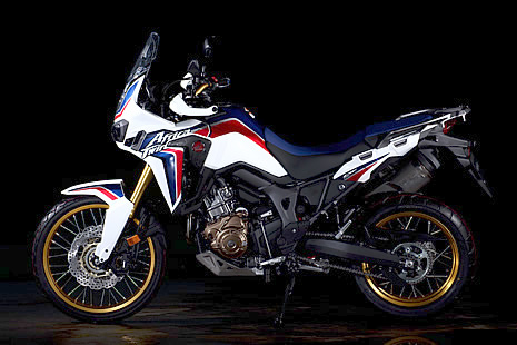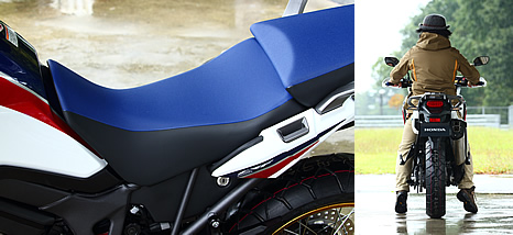 まずはCRFカラー(写真右上)を見てほしい。その名のとおりダカール・ラリーHRCワークスマシン「CRF450ラリー」をイメージしたカラーリングとなっている。そしてトリコロールカラー(写真右下)は、往年のアドベンチャーモデル「XRV750アフリカツイン」をほうふつとさせる。そう、新型アフリカツインには、ラリーレーサーのスピリットとアドベンチャーモデルの伝統が注入されているのだ。それはフロント21インチ、リヤ18インチのホイールを採用していることからも分かる。
