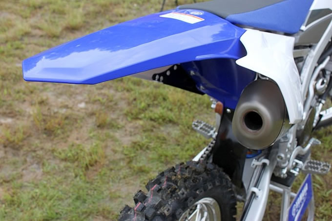 エッジの効いた新しいデザインを含め、同時発売のYZ250Fと共通項は多く、メカニックでもクラッチカバーのサイズと、サイレンサーの位置以外では見分けが付かないという。