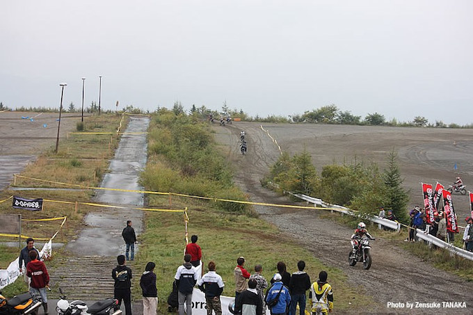 メイン会場となるパルコール嬬恋リゾートホテル前には、モタード、ダート、エクストリームクロス、それにキッズといった各ランドが設けられ、またそこから数キロ離れた浅間火山レース跡地の広大なエリアにはオフロードランド(フラット、トライ、ウッズ)があり、参加者は好きなときに好きな場所を好きなだけ走ることが出来るのです。さらに、ここ嬬恋村は信号の少ない快走ルートがたくさんあり、景色を愉しみながらツーリングするにも最適な土地です。