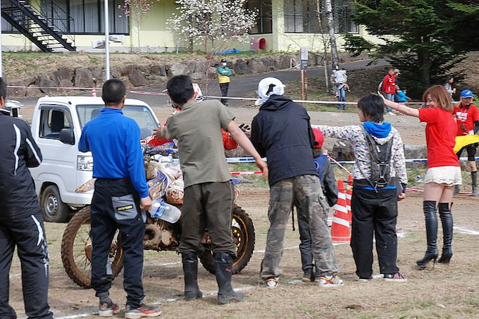 第1戦の後、震災の影響により開催を見合わせていたJNCC(全日本クロスカントリー選手権)ですが、待ちに待った第2戦が、5/15に開催されました。会場となったのは、今回が初開催となる岐阜県高山市の鈴蘭高原。3年前までスキー場として賑わっていたゲレンデの斜面を利用したフィールドで、コースの大半を麓から見渡すことができました。コースの所々では雪解け水が染み出してぬかるみ、ふかふかのウッドチップのエリアは、周回と共にワダチが深くなるなど、難易度が高いセクションへと変化していき、ライダー達を予想以上に苦しめました。午前中のFUNGPに続き、午後にスタートしたCOMPGPでは日本トップクラスのエンデューロライダー達が登場しましたが、レース終盤にはトップライダーの腕を持ってしても、走り抜けるのは容易ではない歯ごたえのあるコースとなっていました。次戦は長野県大町市の爺ガ岳スキー場で6/12(日)に開催されます。JNCC公式サイトによると、エントリーは、既に終了してしまったようですが、トップライダーの走りを間近で見られる機会でも在るので、興味のある方は、まずは観戦してみてはいかがでしょうか。
