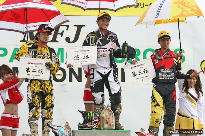 12前大会終了直後に負傷した三原拓也選手の代役として、今大会前週に国別対抗戦のモトクロス・オブ・ネーションズに参戦した竹中純矢選手。今大会で、さっそく世界の舞台で得た経験を結果に結び付け、IA初表彰台に登壇です。