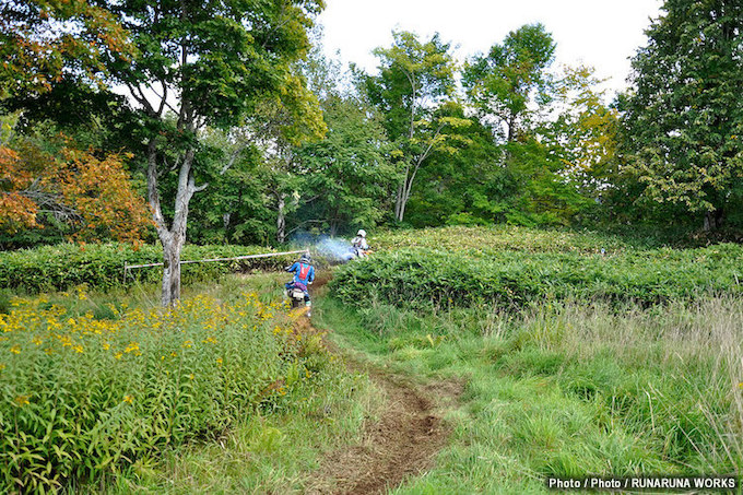 08自然の山の中を走るコースは、日高ならでは。時にラインを見失うほど広大なフィールドを走れる。しかし、ところどころにどっぷりはまってしまうような谷地(ヤチ)もあり、数人のライダーがそこでリタイアを余儀なくされていた。