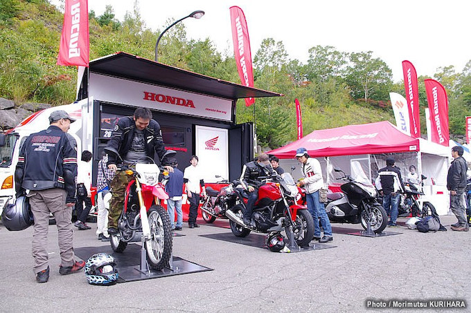 22華やかだったホンダブースでは、CRF250LとNC700シリーズが人気。駐車場でもこの2車種に乗っているオーナーをかなり多く見かけました。