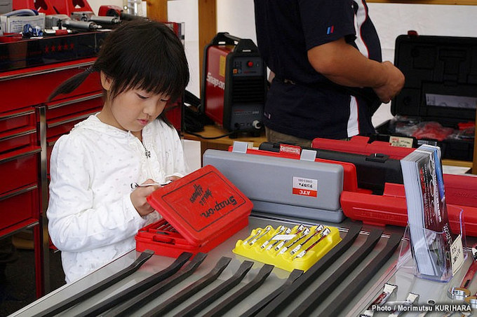 26キラキラしたツールの美しさは、小さな女の子も手に取ってじっくり眺めるほど。どうやら気に入ったのはメガネレンチのようです。