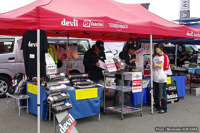 57大グループでイベントに参加した梅田モータ-スは、物販ブースを出展。ウエアなどを販売していた他に、休憩スペースも隣に用意していました。