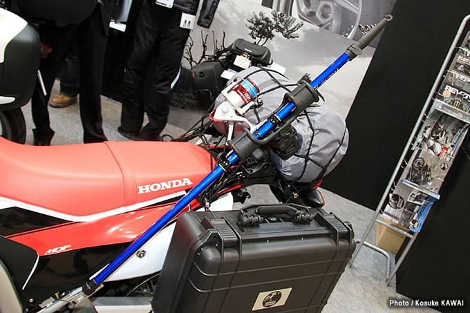 19アドベンチャー野郎御用達のツラーテックから、BMW R1200GS専用のパーツが日本上陸。ハードなライディングをサポートするプロテクター類や、ロングツーリングをサポートするアクセサリーなど、ヘビーデュ―ティな製品がいっぱいでした。