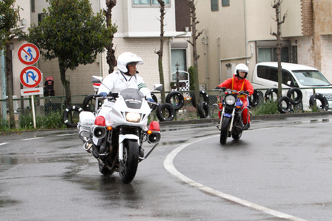 ライダー向けのメインイベントは、自分の愛車で参加できる安全運転競技会で、初心者からベテランまで多くのライダーがエントリー。競技に先立って行われた慣熟走行では、警視庁の白バイ隊員や教習所の指導員からアドバイスをもらって練習走行。雨の日のバイクの挙動やコントロールを学ぶには貴重な機会となりました。走行の合間には白バイ隊員や指導員のデモ走行もあり、その迫力とライディングの上手さに拍手喝采でした。