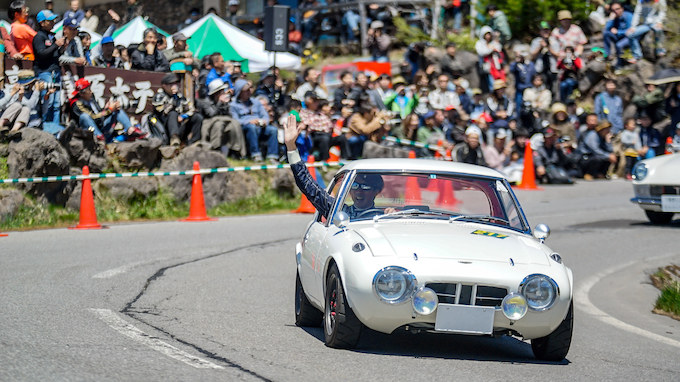 このイベントは2012年からはじまり、今年で第6回を数えた。国内外のヒストリックカーやビンテージマシンなど、普段めったにお目にかかれない貴重な車両をはじめ、一般公道走行不可のレースマシンも走る。往年のフォーミュラカーやラリーカー、GPマシンなどが高峰高原へと駆け上がるチェリーパークラインを疾走する姿は、モータースポーツファンにとって垂涎ものだ。