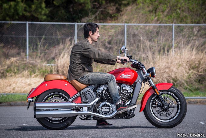 1920年~40年にかけてアメリカンクルーザーの象徴的存在として名を馳せたインデアンのSCOUT(スカウト)。その後70年の時を経て、デザインを敬称しつつも、インディアン初の水冷1,130ccVツインエンジンを採用するなどして、最新技術を盛り込んだ新たなインディアンSCOUT が登場ました。今回足つきチェックを行うのは、その新生SCOUTです。