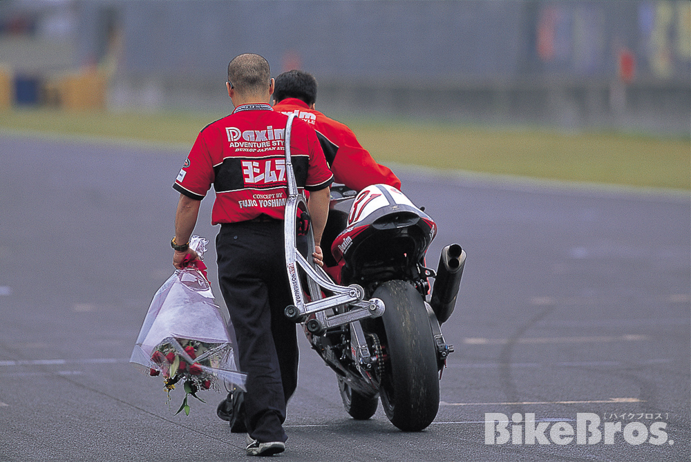 決勝は209ラップで総合6位、S-NKクラス優勝と大健闘した(トップは新記録215ラップ)。S-NKクラスの表彰は、総合表彰が行われる2階の高い場所ではなく、1階のピット前に設けられた特設表彰台で行われた。押し寄せたファンと同じ目線の表彰が、いかにもS-NKらしく、ライダーたちと表彰台に上がった不二雄は満面の笑みだった。自分たちが作りたいバイクを自由に作り、それで得た最良の結果に、ファンの歓喜の波が応えた。また、優勝したのはスーパーバイク2気筒1000ccのホンダVTR1000SPWで、4気筒750cc時代が終わりことを告げていた。