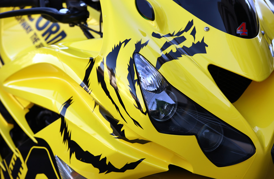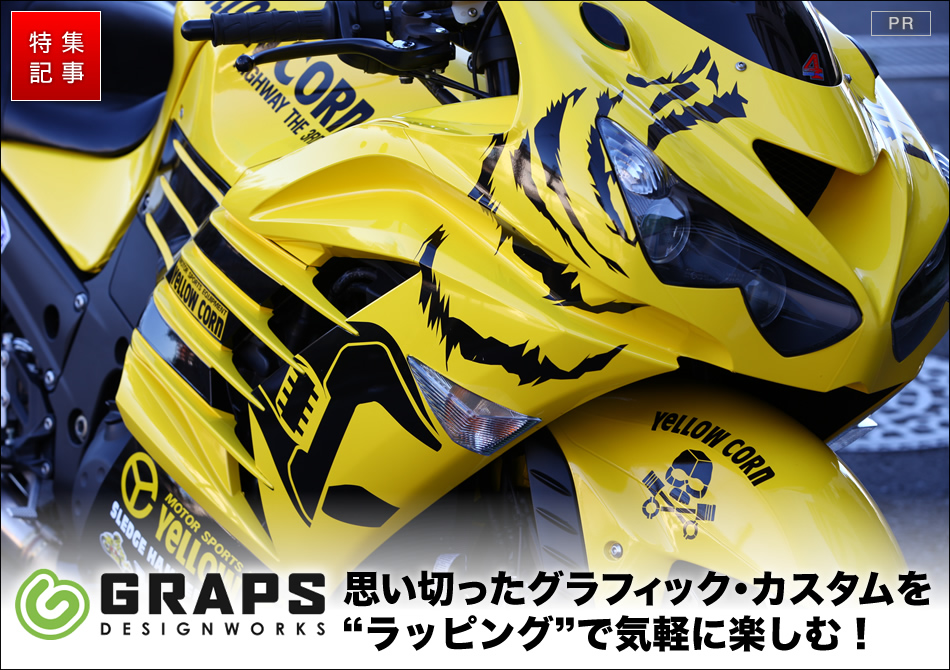 百聞は一見にしかず。バイナルグラフィックを施工したカサワキZX-14Rを見てほしい。その完成度の高さに驚くはずだ。さらに今回は、ヘルメットにもバイナルグラフィックを施工してもらったので、その工程も併せてご覧いただきたい。