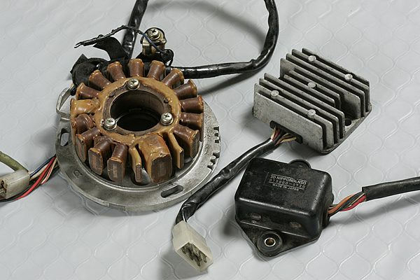 この年代のモデルに共通するウィークポイントである「電装部品」にも注意したい。CDIやレギュレーターの故障は前触れもなく突然やってくるため、補修部品が入手できる今のうちにスペア部品を手に入れておいたほうが無難だ。また、劣化して抵抗が増大したワイヤーハーネがエンジン不調を招く恐れもある。ヘッドライトが暗い車両は要注意だ。長く乗るつもりなら、納車時にハーネス交換を視野に入れても良いだろう。既にメーカー欠品となっているステーターコイルは、ハーネスカプラーが熱で溶けて、導通不良に陥っていることもあり、注意したい。