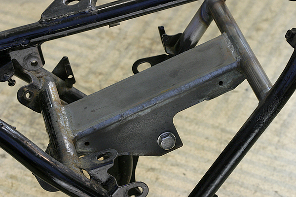 | フレームの大掛かりな変更を伴うリアセクションのカスタムには中々手が出ないという人も多いだろう。しかし、リンクを持たないカンチレバータイプのノーマルサスペンションも、そのレイアウトを生かしてグレードアップ可能なスイングアームも販売されている。それらを利用すればアルミ化による軽量化ができる。また、それらの製品は、大抵の場合リアのディスク化も実現できるため、一石二鳥なのだ。