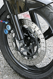 | 足周りの流用カスタムはRZでも数多く行われるカスタムメニューのひとつだ。一度やったら元には戻れない部分だけに、どのような手法を取るかは誰もか頭を悩ませるところ。ランナーでは3MA(後方排気のTZR)の足周り流用が定番メニューだ。適度な剛性アップと、同一メーカーのパーツ流用ならではのバランスの良さ。専門店ならではのクリーンなフィニッシュだ。 |