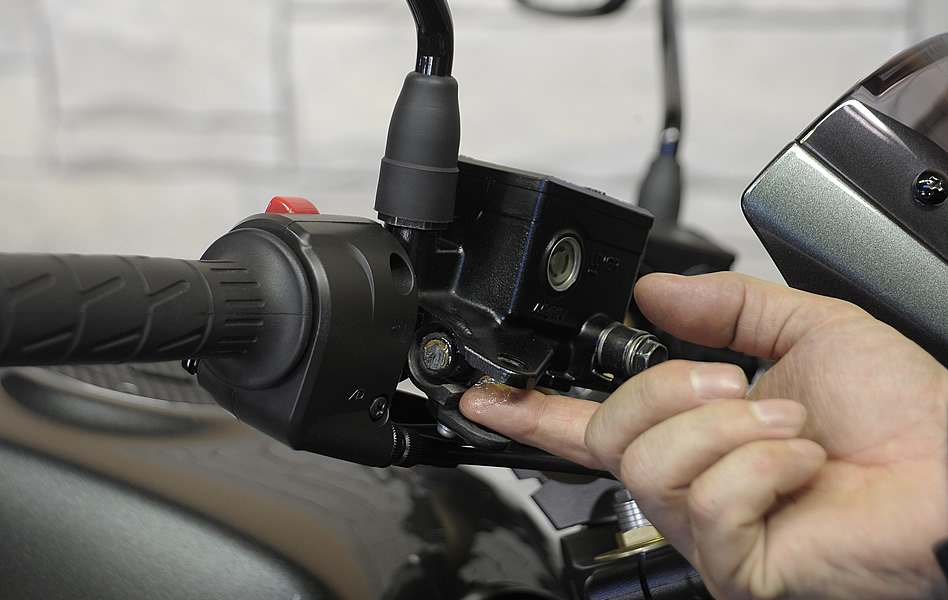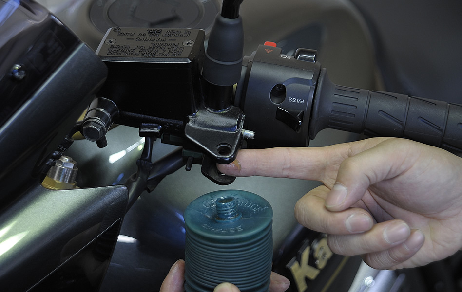 工具のほかに用意するのは、水に流れにくいシリコン系のグリス。油分を補わずにレバーだけ単に交換してしまうと、せっかくの優秀な操作フィーリングがスポイルされてしまうのだ。その点にだけ注意しながら取り付けて、好みの位置にレバーの角度を調整すれば完成である。見た目もゴージャスなハンドルまわりのできあがりだ。操作フィーリングも抜群なので、走りが変化することは間違いない。満足度は極めて高いはずである。