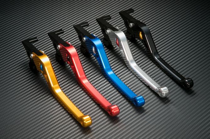 レバー本体のカラーは7種類。レバーアタッチメントはすべてブラックで精悍なイメージだ。愛車のカラーにどうコーディネイトするかは、オーナーの自由である。
