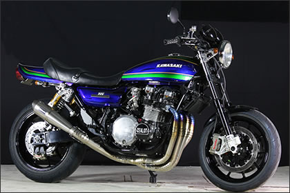 ZEALOTカスタムバイクの看板車のZ1、バイク雑誌で目にした人も多いだろう。伊藤代表の個人所有車で、様々なカスタマイズの実験台として、日々進化している。ZEALOTでは、オリジナルパーツの開発も行っている。このZ1にも、オリジナルの、マフラー、キャブレターのスピゴット、パルサーカバー等が装着されている。