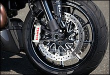 また、ムルティストラーダ同様、ライド・バイ・ワイヤを採用しているため、ライディングモードを選択して、好みのエンジン特性を選んで走ることが可能だ。モードの種類は「SPORT」「TOURING」「URBAN」の3種で、SPORTとTOURINGは112ps、URBANは100psを発生。それぞれパワーカーブも異なる設定となっている。ムルティストラーダ同様のシステムとして、キーレスエントリーも採用された。メーターは2種類の液晶パネルを採用し、ハンドル中央には速度と回転などを表示するLCD液晶、燃料タンク上にはTFT液晶パネルが設けられ、ギアポジションや走行モード、燃費などを表示する。