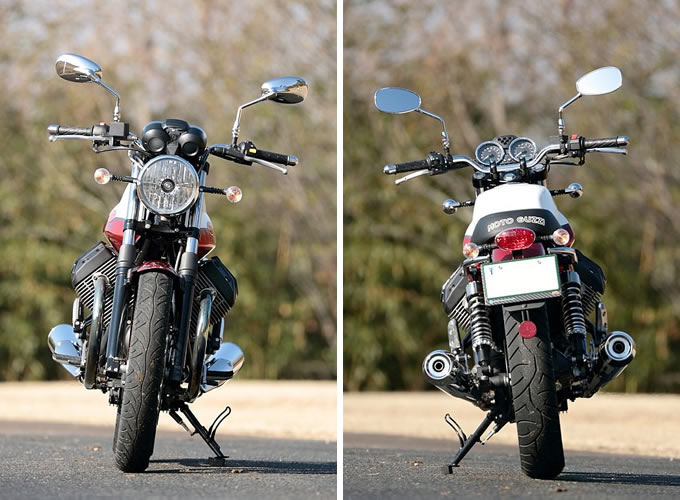 なお、新型V7シリーズには、シャーシなどの基本構成を共通とする『V7 Stone』も同時にラインナップ。こちらは白や黒のモノトーンの車体色と、新設計のアルミ製キャストホイールが採用されるなど、シックで都会的な雰囲気が特徴だ。価格も89万8,000 円と抑えられている。