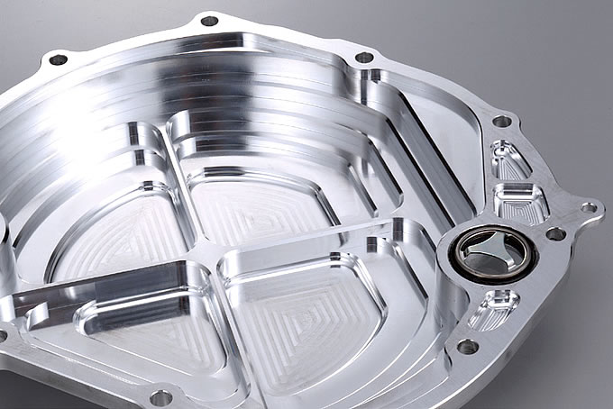 モトGPマシンにも通じる美しい切削痕。AP2000材をNCで削り出しており、仕上げはバフとシルバーアルマイトの2種類から好みで選べる(同価格)
