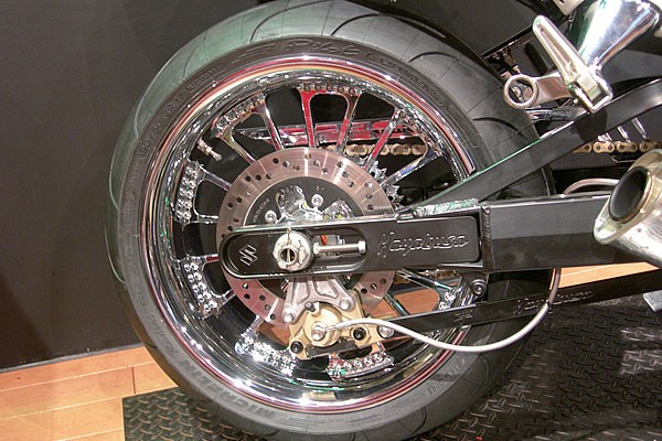 ハンドル周りはメッキパーツを随所に使用し、隼のロゴが8個も散りばめられている。メーターパネルにはELライトを装着。