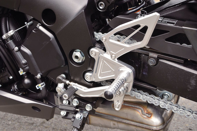 ステップバーの位置は35/40mmアップ、00/10mmバッグから任意に選べる4ポジションのステップキットで7万9,920円。各アルミパーツはカラーオーダーも可能だ。
