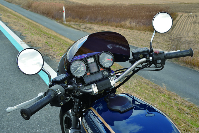 ビキニカウルは車両とほぼ同時に購入したそうで、当初からカフェスタイルを予定していたことが分かる。「当初はもっといかついイメージに仕上げるつもりだったんですが、タンクやシートなどを合わせていくと、どうしてもノーマルラインに近いフォルムの方がしっくりくるんですよね(笑)」(同)。