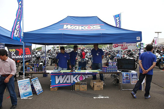 37高性能オイルや各種ケミカルの WAKO'S(ワコーズ)では、保護・艶出し剤「バリアスコート」をヘルメットで体験できるサービスを実施。