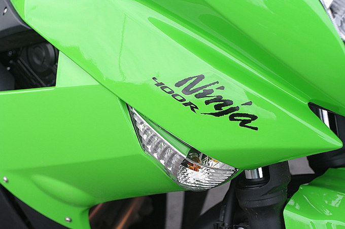 長らく欠番だった「400ccのフルカウルスポーツ」がいよいよ復活!ウインドプロテクションに優れたフルカウルボディに、水冷DOHC並列2気筒エンジンを搭載した「ニンジャ400R」は、今最も注目を集めている1台。アップハンドルやワイドスクリーン、タンデムを考慮したシートなどを備える最新のミドルクラス・スポーツツアラーだ。今回は発売直前のニンジャ 400Rを、編集部スタッフがインプレッション。まずは一足先に、話題のスポーツツアラーのディティールカットをお届けする。新しいニンジャの細部を是非チェックして欲しい。