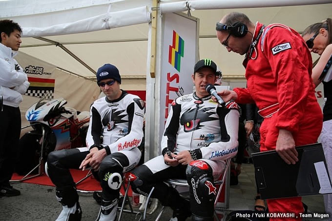 直前にスリックタイヤか溝付きタイヤにするかを選択するため、フロントタイヤは外されている。結局、マクギネス選手、アンスティ選手ともにスリックタイヤを選択した。
