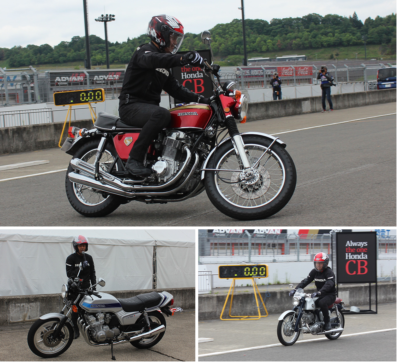 今回はコレクションホールに所蔵されているベンリィCB92スーパースポーツ、ドリームCB750FOUR、CB750Fを宮城さんがデモラン。各車の評価は、CB92が「“カムが乗る”エンジンフィーリング」、750FOURは「軽快に走れるハンドリング」、宮城さんの青春バイクという750Fが「レスポンスのいいエンジンと造形の美しさ」というもの。いずれも短距離ながら絶好調のエキゾーストを響かせて、観客のCBオーナーから羨望の熱視線を浴びていた。